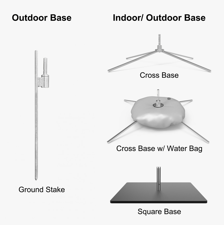 - Base options for indoor and outdoor
